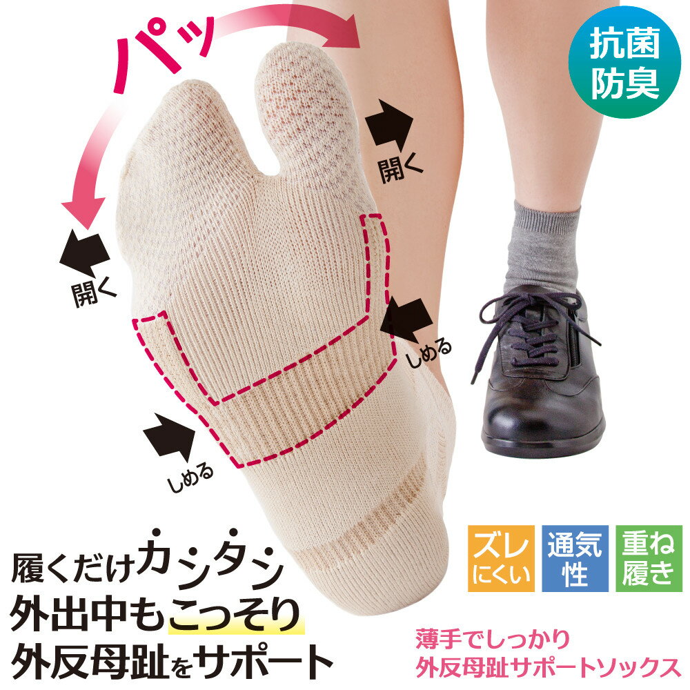 GWステイホーム応援\ポイント3倍/ 靴下 レディース くつした ソックス 履くだけ カンタン こっそり 外反母趾 サポート サポーター 汗 臭い 対策 重ね履き フィット メッシュ テーピング ムレにくい 足袋型 [ 薄手でしっかり外反母趾サポートソックス(1足組) ]