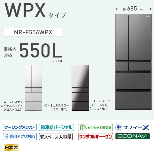 [予約 約1か月以上以降]【キャッシュレス5%還元】【設置込】パナソニック 6ドア パーシャル搭載 冷蔵庫 550L 幅68.5cm NR-F556WPX-X【/srm】【KK9N0D18P】